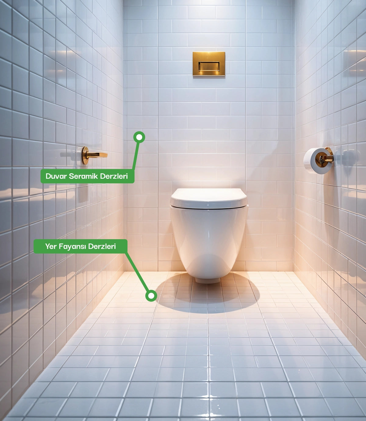 • Tuvalet Kenarı Derzleri: Hijyen sağlar, kötü kokuları azaltır ve berrak görünüm sunar